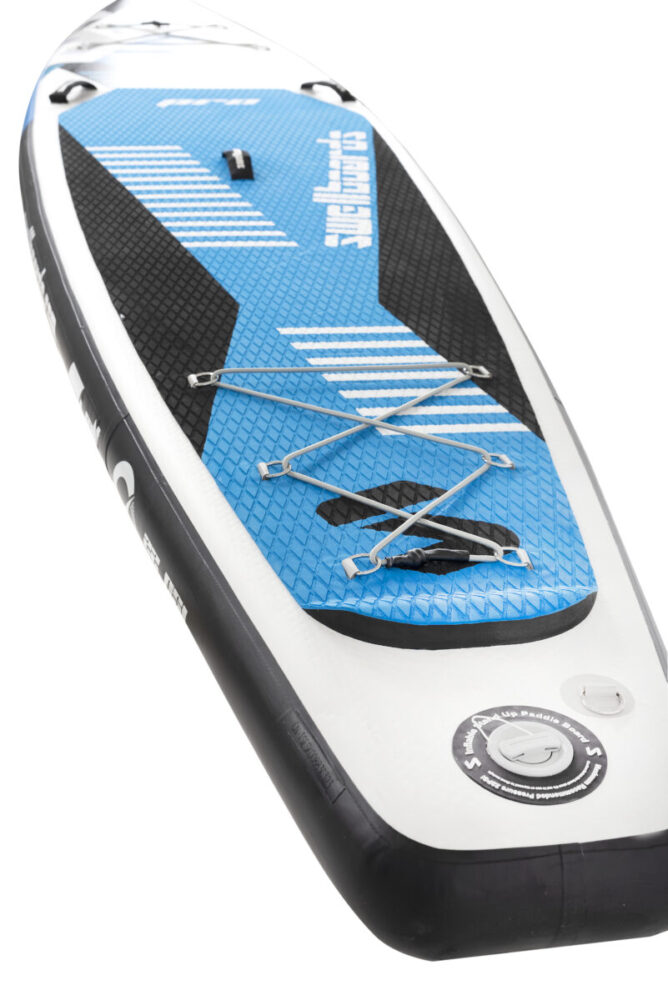 • Inflador de Doble Acción Premium: Un inflador de alto rendimiento para alcanzar los 22 PSI de presión recomendados sin esfuerzo, preparando tu tabla para la máxima rigidez.